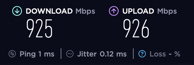 Within days, I signed up through Sonic, a local ISP which uses AT&T’s fiber network. I had my eye on that combination since Sonic received five stars in the Electronic Frontier Foundation’s annual privacy rankings (Automattic and WordPress.com also earned that top rating). Soon enough, I was basking in the glory of 1 millisecond pings and consistent, symmetric, jitter-free 925 Mbps connectivity: